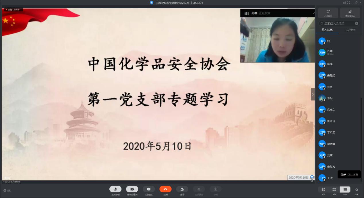 5月10日晚上7點(diǎn),中國(guó)化學(xué)品安全協(xié)會(huì)第一黨支部召開釘釘視頻會(huì)議,專題學(xué)習(xí)應(yīng)急管理部召開的?;分卮笪kU(xiǎn)源企業(yè)專項(xiàng)檢查督導(dǎo)行動(dòng)動(dòng)員部署視頻會(huì)議精神。會(huì)議由協(xié)會(huì)黨委副書記馬欣妮主持,第一黨支部全體黨員參加了會(huì)議。