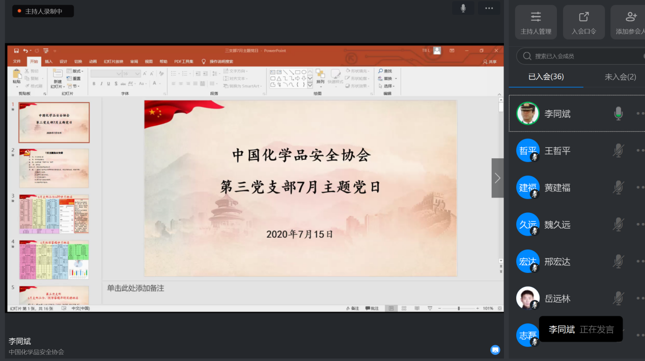 7月15日,協(xié)會第三黨支部以釘釘視頻會議的形式開展7月主題黨日。