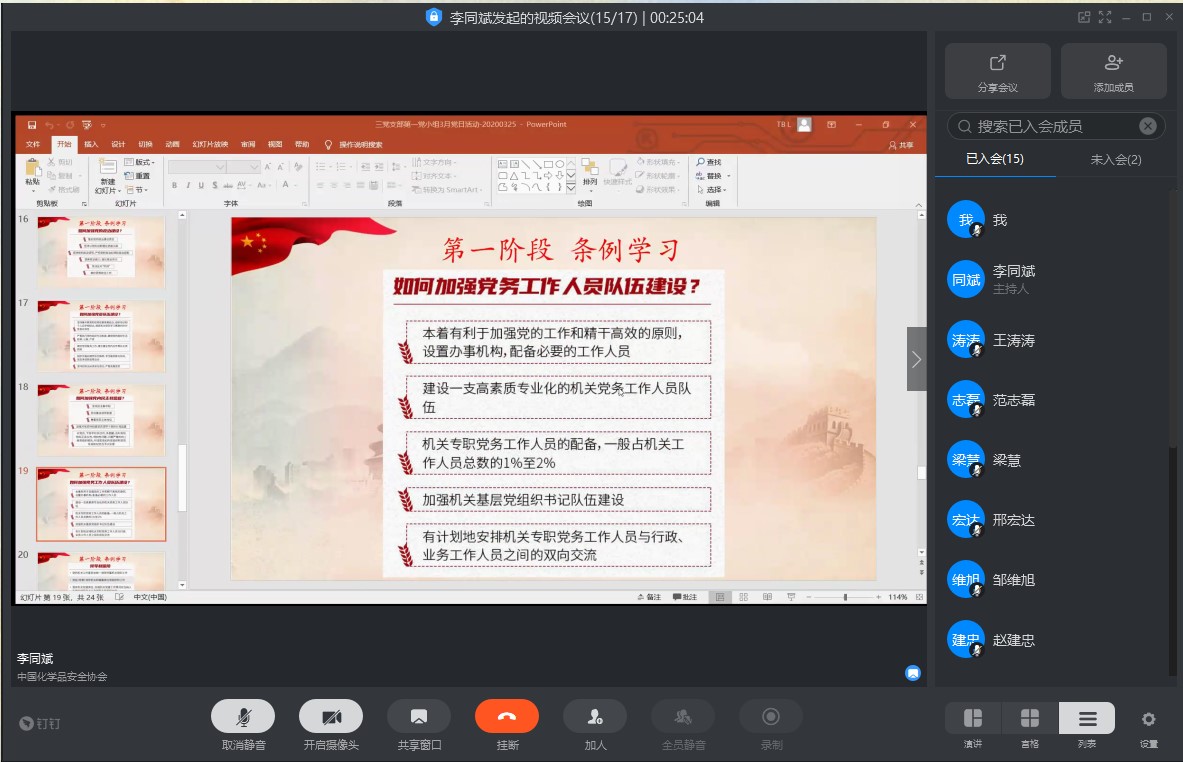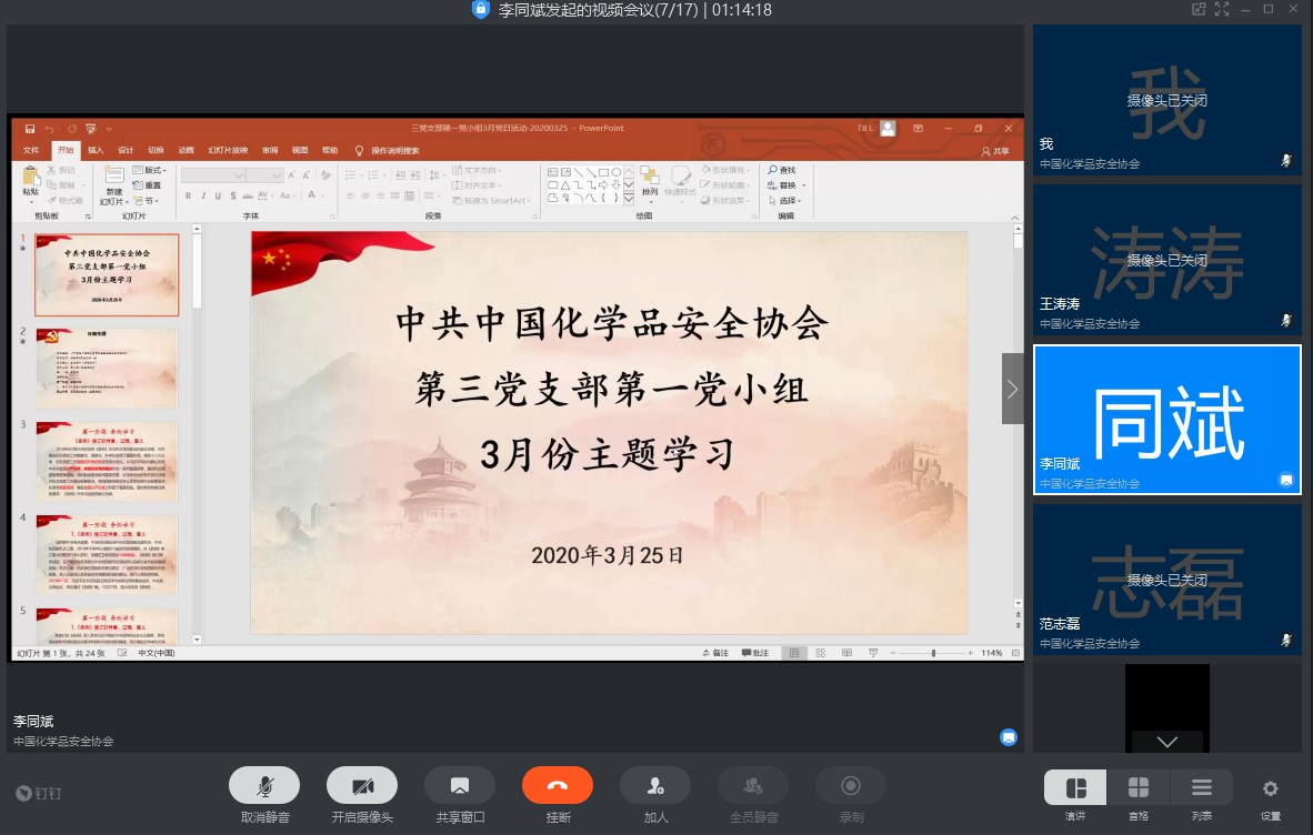 2020年3月25日晚上,中國化學(xué)品安全協(xié)會第三黨支部第一黨小組召開成立之后的第一次學(xué)習(xí)會議,專題學(xué)習(xí)《中國共產(chǎn)黨黨和國家機(jī)關(guān)基層組織工作條例》(以下簡稱《條例》),并進(jìn)行研討交流。