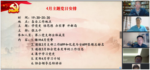 張玉平同志還公布了3月份支部工作APP排名和化危為安APP微信答題情況,要求大家忙工作的同時,要堅持學習,充分利用好時間,扭轉當前分數排名落后的局面;通報了3月份協(xié)會黨委發(fā)布的工作信息;發(fā)布了4月份學習計劃。