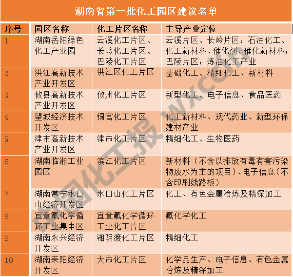 湖南公示第一批化工園區(qū)認(rèn)定名單