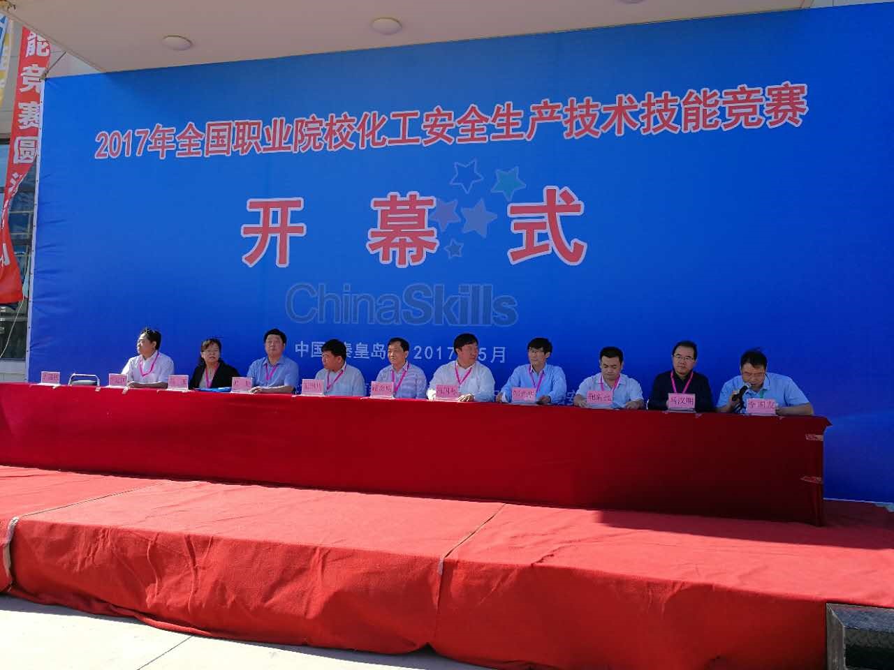 5月25日,由全國職業(yè)教育教學(xué)指導(dǎo)委員會(簡稱安全行支委)、中國化學(xué)品安全協(xié)會主辦,化工安全專業(yè)分委員會承辦的2017年全國職業(yè)院校“化工安全生產(chǎn)技術(shù)技能競賽”在秦皇島華北科技學(xué)院實訓(xùn)基地隆重開幕。國家安全監(jiān)管總局監(jiān)管三司、人事司相關(guān)處室負責(zé)人,教育部行指委工作辦公室、全國安全職業(yè)教育教學(xué)指導(dǎo)委員會領(lǐng)導(dǎo)同志,秦皇島市相關(guān)領(lǐng)導(dǎo)同志出席競賽開幕式。來自全國17個省市職業(yè)院校的43支代表隊全體隊員、來自第三方職業(yè)院校和企業(yè)的教師、安全管理人員組成的36名裁判員隊伍及工作人員參加了開幕式。中國化學(xué)品安全協(xié)會副理事長、秘書長路念明出席開幕式并致辭。