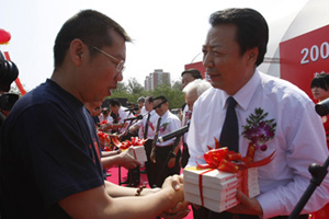 在咨詢?nèi)臻_幕式上,出席活動的領(lǐng)導(dǎo)為北京市自來水集團有限責(zé)任公司等十家“安康杯”競賽優(yōu)勝企業(yè)頒發(fā)了獎杯,向首都建設(shè)者農(nóng)民工代表贈送了一批安全圖書。四名小學(xué)生代表全市的小朋友作了題為《安全交響曲》的獻詞,首鋼總公司職工代表向全市職工發(fā)出了“平安奧運”行動倡議書并作了集體宣誓。