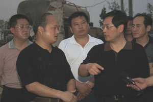 孫華山率總局工作組在安徽鳳陽晶鑫礦業(yè)公司爆炸現(xiàn)場(chǎng)指導(dǎo)搶險(xiǎn)救援
