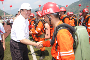 | 楊元元率國務(wù)院第二督導(dǎo)調(diào)研組在四川省宜賓市觀看礦山應(yīng)急救援綜合演練。 | 楊元元率國務(wù)院第二督導(dǎo)調(diào)研組在合江縣榕山客運碼頭進行現(xiàn)場檢查。 |
