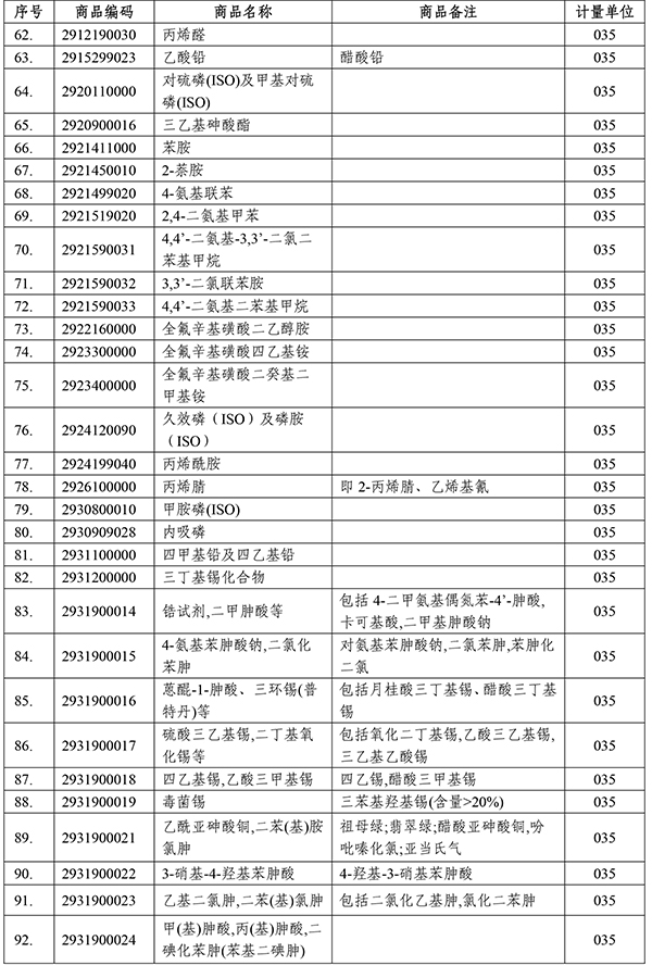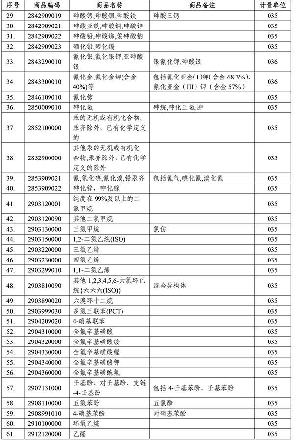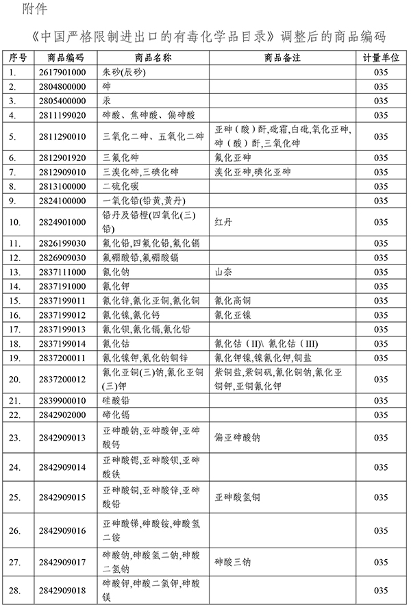 有毒化學(xué)品進(jìn)出口環(huán)境管理登記商品編碼調(diào)整