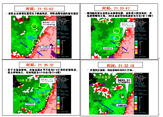 3.下?lián)舯┝髑闆r。據(jù)岳陽多普勒天氣雷達(dá)(距事發(fā)地點(diǎn)50千米)觀測(cè)資料分析,21:26:32,雷達(dá)測(cè)到的700米高度上的徑向風(fēng)速度在不到6分鐘之內(nèi)由12米/秒增大至17-20米/秒,據(jù)氣象專家綜合雷達(dá)觀測(cè)、現(xiàn)場(chǎng)災(zāi)情調(diào)查及當(dāng)事人和目擊者談話筆錄分析判斷,“東方之星”輪傾覆水域遭遇下?lián)舯┝饔绊憽?br />