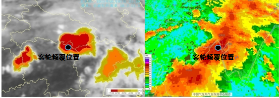 6月1日21:00至22:00,“東方之星”輪航行水域上空出現(xiàn)颮線天氣系統(tǒng),該系統(tǒng)伴有下?lián)舯┝鳌埦盹L(fēng)、短時(shí)強(qiáng)降雨等局地性、突發(fā)性強(qiáng)對(duì)流天氣,客輪傾覆水域遭受強(qiáng)風(fēng)暴雨襲擊。(注:颮線是由許多單體雷暴云連在一起并側(cè)向排列而形成的強(qiáng)對(duì)流云帶。下?lián)舯┝魇侵敢环N雷暴云中局部性的強(qiáng)下沉氣流,到達(dá)地面后會(huì)產(chǎn)生一股直線型大風(fēng),越接近地面風(fēng)速越大,最大地面風(fēng)力可達(dá)15級(jí))