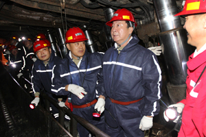 | 7月10日,楊元元與內(nèi)蒙古自治區(qū)副主席郭啟俊、王波就進一步加強內(nèi)蒙古自治區(qū)的安全生產(chǎn)工作交換意見。 | 7月12日,楊元元率國務(wù)院安委辦第二督導調(diào)研組在博源集團灣圖溝煤礦井下檢查煤礦安全生產(chǎn)工作。 |