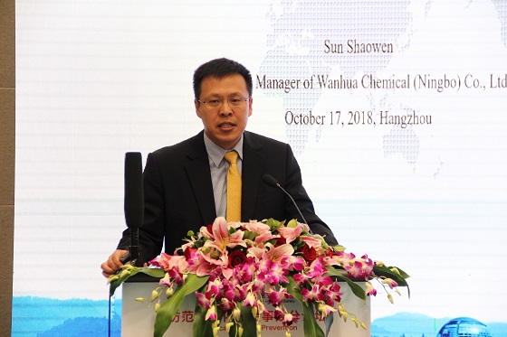 來自萬華化學(xué)(寧波)有限公司總經(jīng)理孫少文和科思創(chuàng)公司中國區(qū)高級副總裁陳耘分別介紹本企業(yè)在安全管理方面的先進(jìn)經(jīng)驗(yàn)。