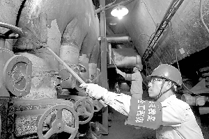 圖為8月12日,該廠熱電車間兩名安全管理人員掃除制粉機(jī)粉塵。 (朱華南 攝)