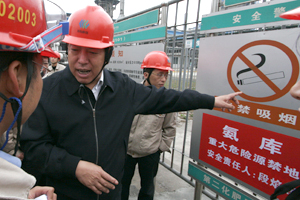 11月12日,檢查組一行來到西部(成都)化工市場現(xiàn)場,聽取了成都龍泉驛區(qū)人民政府對化工企業(yè)安全生產(chǎn)監(jiān)管情況的匯報和西部化工市場負(fù)責(zé)人對該市場內(nèi)安全生產(chǎn)管理工作情況的匯報。檢查組一行實地檢查了化工市場內(nèi)的罐區(qū)、危險化學(xué)品倉儲、運輸?shù)葏^(qū)域,就現(xiàn)場發(fā)現(xiàn)的問題提出了針對性意見。隨后,王德學(xué)會見了成都市市長葛紅林,聽取了成都市安全生產(chǎn)工作的簡要匯報,就該市安全生產(chǎn)工作交換了意見。王德學(xué)表示要結(jié)合當(dāng)?shù)毓ぷ鲗嶋H,深入學(xué)習(xí)實踐科學(xué)發(fā)展觀活動,深刻認(rèn)識科學(xué)發(fā)展觀對安全生產(chǎn)工作的重大指導(dǎo)意義,進一步增強做好安全生產(chǎn)工作的信心和決心。 11月13日上午,王德學(xué)率第三檢查組來到川化股份有限公司。在聽取了公司負(fù)責(zé)人關(guān)于安全生產(chǎn)工作的匯報后,檢查組一行來到廠區(qū)第二化肥廠總控室、雙氧水萃取塔、液氨儲罐、三聚氰胺廠總控室實地查看了現(xiàn)場安全生產(chǎn)狀況。下午,檢查組在成都市青白江區(qū)召開座談會,四川省、成都市、青白江區(qū)政府及有關(guān)部門負(fù)責(zé)人、有關(guān)化工企業(yè)負(fù)責(zé)人參加了會議并作了發(fā)言。在聽取大家的建議意見后,王德學(xué)作了講話,他首先肯定了成都市在安全生產(chǎn)工作上所取得的成績,然后對下一步如何做好安全生產(chǎn)工作提出五點要求:一是必須抓根本。安全生產(chǎn)工作的根本就是樹立和落實科學(xué)發(fā)展觀、促進經(jīng)濟發(fā)展方式的轉(zhuǎn)變、企業(yè)主體責(zé)任的落實、政府監(jiān)管責(zé)任的到位、長效機制的健全、治本措施的落實;二是必須抓源頭。抓源頭就是抓企業(yè)立項、安全預(yù)評價、"三同時"、安全許可、淘汰落后,無論企業(yè)還是政府都必須抓源頭工作。三是必須抓細(xì)節(jié)。安全生產(chǎn)工作細(xì)節(jié)決定成敗,不抓細(xì)節(jié)就會出大問題,不抓小事就會發(fā)生大事故。四是必須抓落實。企業(yè)是主體,關(guān)鍵是責(zé)任,核心是落實,不抓落實就沒有果實。五是必須抓執(zhí)法。監(jiān)管部門必須著眼于執(zhí)法、致力于執(zhí)法,按照法律法規(guī)要求,認(rèn)真執(zhí)法、嚴(yán)格執(zhí)法、規(guī)范執(zhí)法,通過執(zhí)法來解決存在的突出問題。
