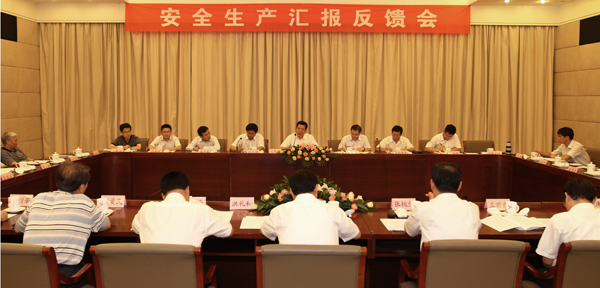| 7月13日下午,國(guó)務(wù)院安委辦第三督導(dǎo)調(diào)研組聽取江西省安全生產(chǎn)領(lǐng)域“打非治違”工作情況的匯報(bào)。 | |