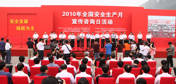2010年全國(guó)“安全生產(chǎn)月”宣傳咨詢?nèi)栈顒?dòng)在北京現(xiàn)代汽車有限公司舉行。國(guó)家安全監(jiān)管總局局長(zhǎng)駱琳出席并致辭。 |