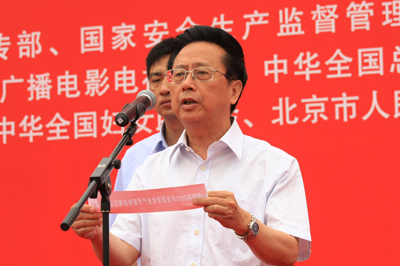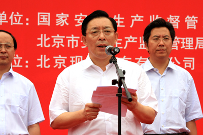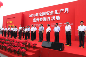 全國(guó)人大常委會(huì)副委員長(zhǎng)陳昌智宣布2010年全國(guó)“安全生產(chǎn)月”宣傳咨詢?nèi)栈顒?dòng)開始。安全監(jiān)管總局局長(zhǎng)駱琳和北京市人民政府副市長(zhǎng)茍仲文分別致辭。安全監(jiān)管總局副局長(zhǎng)楊元元主持活動(dòng)儀式。
