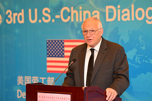 | 8月20日,第三屆中美安全生產(chǎn)與職業(yè)健康對話在北京召開。美國勞工部副部長約瑟夫•梅恩出席對話并致辭。 |