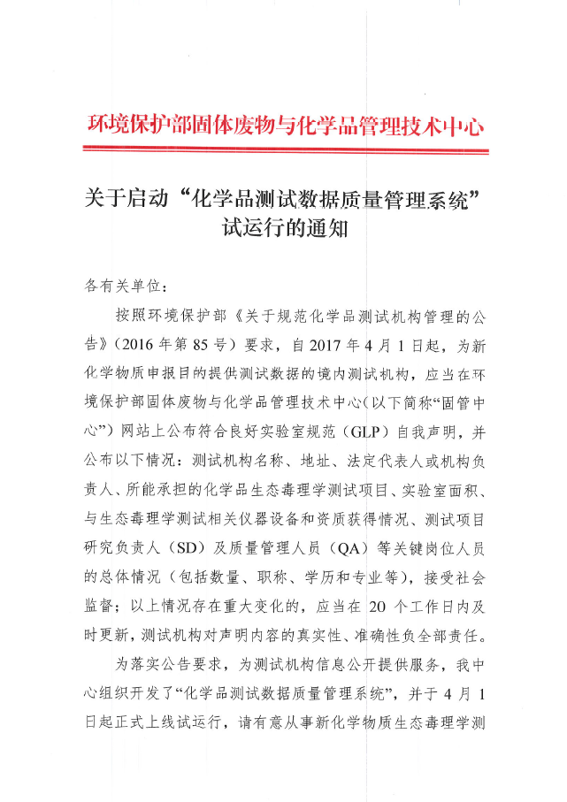 “化學(xué)品測試數(shù)據(jù)質(zhì)量管理系統(tǒng)”試運行