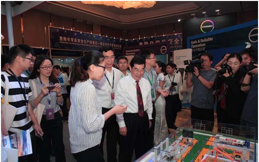 9月21日上午,國家安全生產(chǎn)監(jiān)督管理總局黨組成員、總工程師王浩水,中國化學(xué)品安全協(xié)會(huì)理事長、中國海洋石油總公司總經(jīng)理劉健,國際化學(xué)品制造商協(xié)會(huì)主席趙賦斯,中國工程院院士、北京化工大學(xué)教授高金吉,南京市人民政府常務(wù)副市長劉以安,江蘇省安全監(jiān)管局局長陳正邦,美國化學(xué)工程師協(xié)會(huì)化工過程安全中心技術(shù)總監(jiān)路易莎•娜拉,國家安全監(jiān)管總局化學(xué)品登記中心主任孫萬付,國務(wù)院安委會(huì)專家咨詢委員會(huì)理論與法制研究專業(yè)委員會(huì)專家、中國化學(xué)品安全協(xié)會(huì)副理事長張廣華,南京市安全監(jiān)管局局長劉偉等出席開幕式并參觀展覽。開幕式由國家安全生產(chǎn)監(jiān)督管理總局國際交流合作中心主任陳江主持。王浩水一行參觀展覽