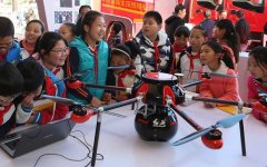 10月29日,北京市豐臺一小長辛店分校的學(xué)生在2015年應(yīng)急產(chǎn)業(yè)發(fā)展大會上參觀一款可用于災(zāi)害勘測的六旋翼無人機(jī)傾斜攝影系統(tǒng)。當(dāng)日,2015年應(yīng)急產(chǎn)業(yè)發(fā)展大會在北京舉行。本次大會由
