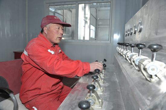 “以前加重的時(shí)候得用人一袋一袋的往漏斗里加,又慢又累,現(xiàn)在只要接上氣管線,石粉就被吹進(jìn)泥漿里,1個(gè)人1個(gè)小時(shí)之內(nèi)就可以完成以前4、5個(gè)人,3、4個(gè)小時(shí)干的活,平均每口井縮短加重時(shí)間2-3個(gè)小時(shí),而且沒有粉塵。”鉆工杜南南笑著說。
