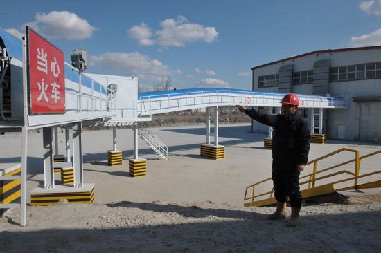 鉆井二公司石粉廠胡廠長(zhǎng)介紹自動(dòng)傳送裝置