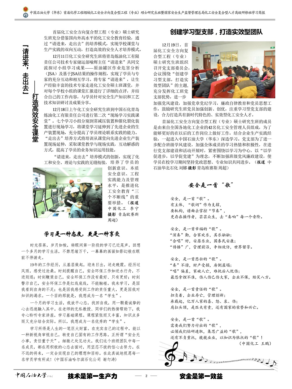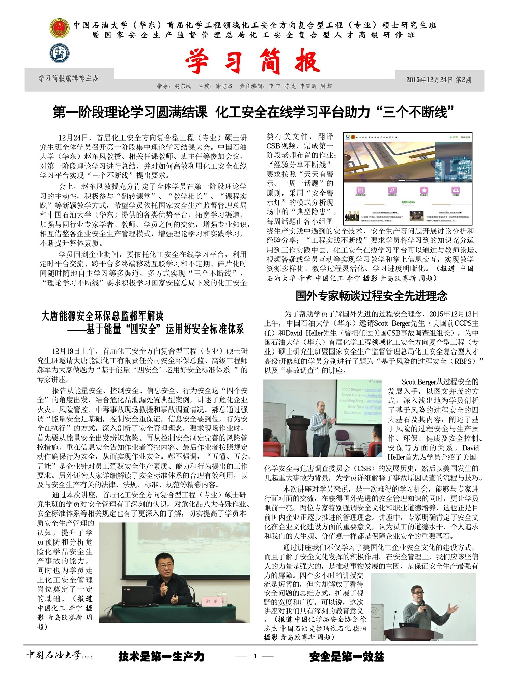 化工安全復(fù)合型人才高級研修班學(xué)習(xí)簡報2期