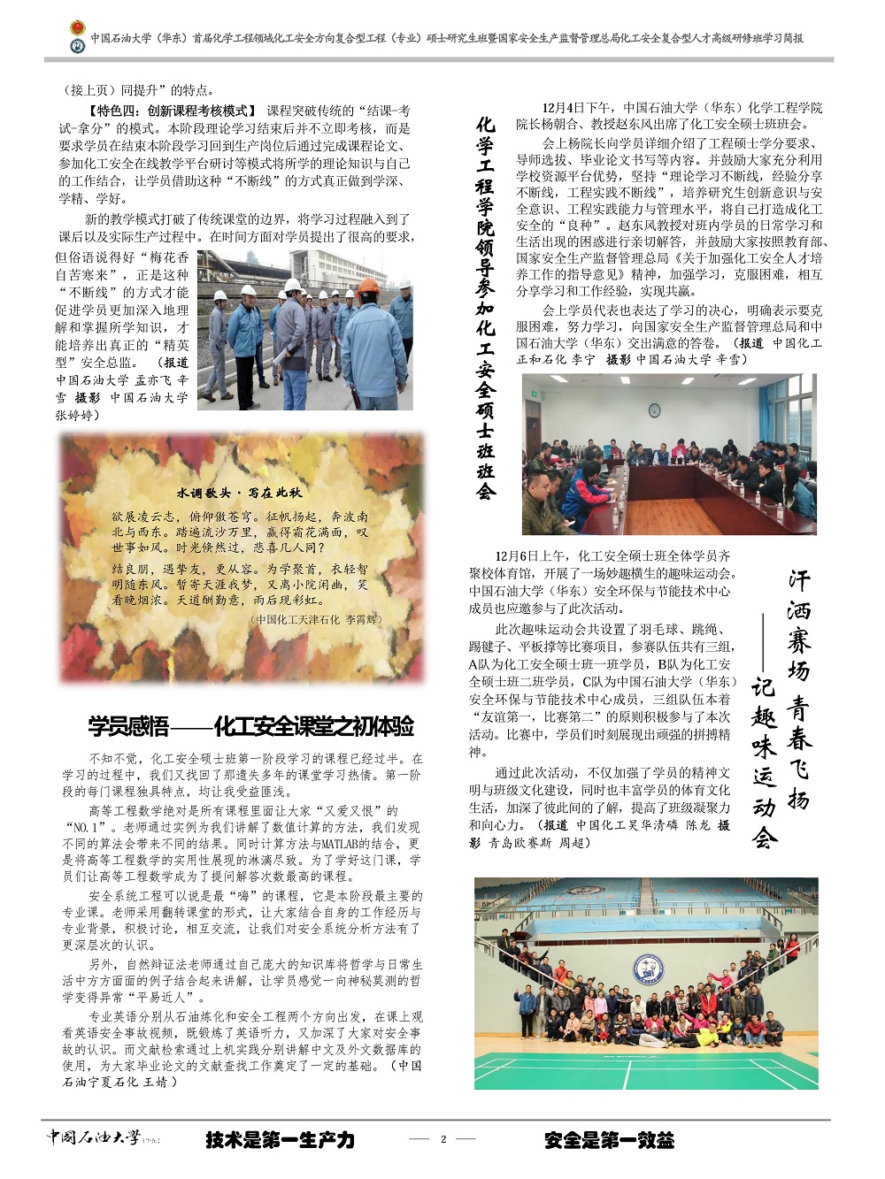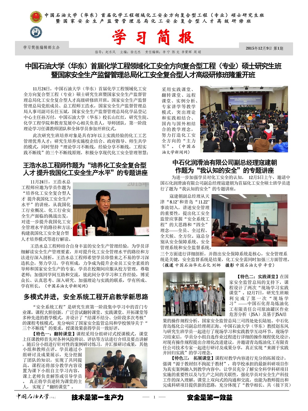 化工安全復(fù)合型人才高級(jí)研修班學(xué)習(xí)簡(jiǎn)報(bào)1期