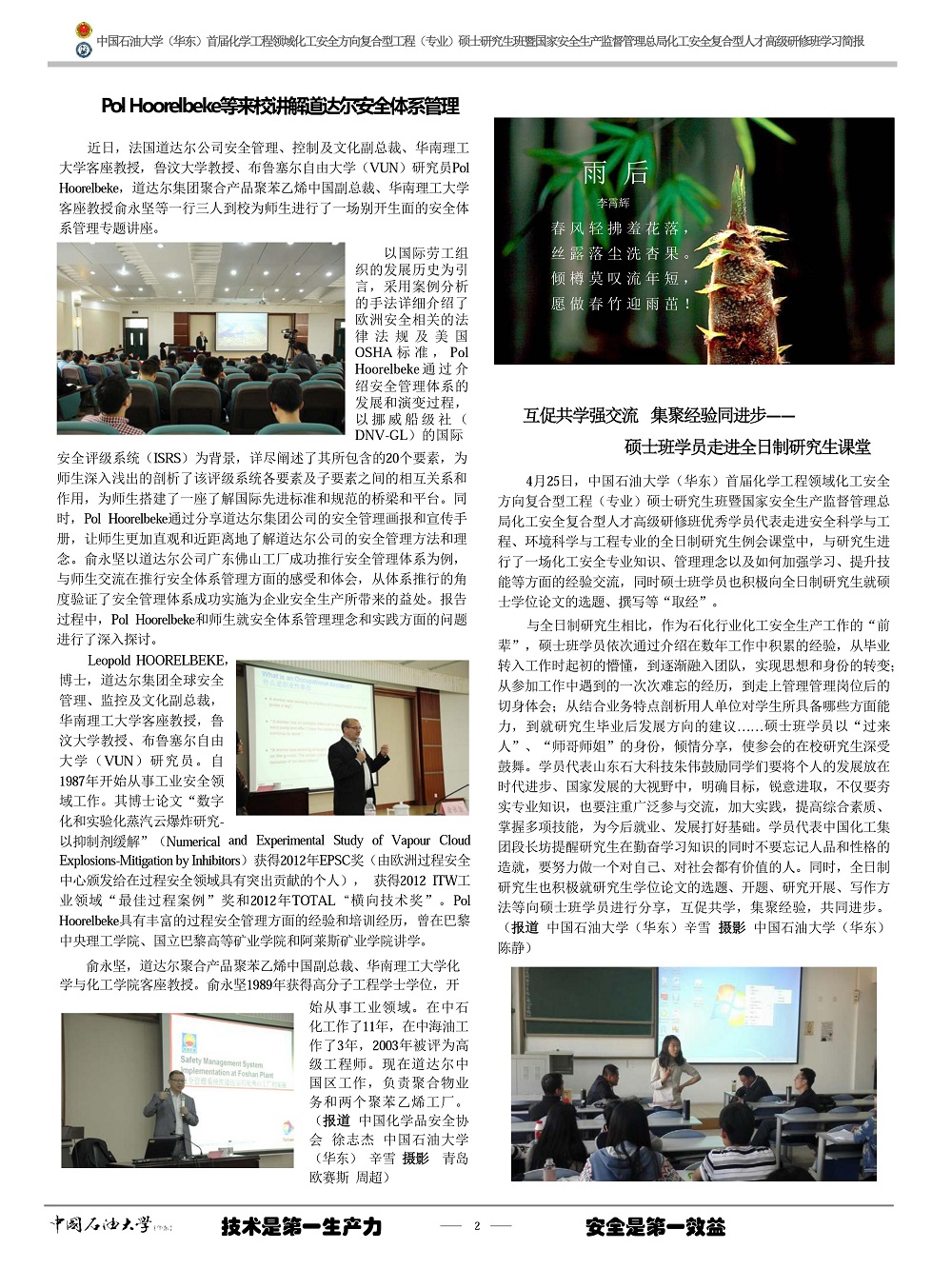 化工安全復(fù)合型人才高級(jí)研修班學(xué)習(xí)簡(jiǎn)報(bào)4期
