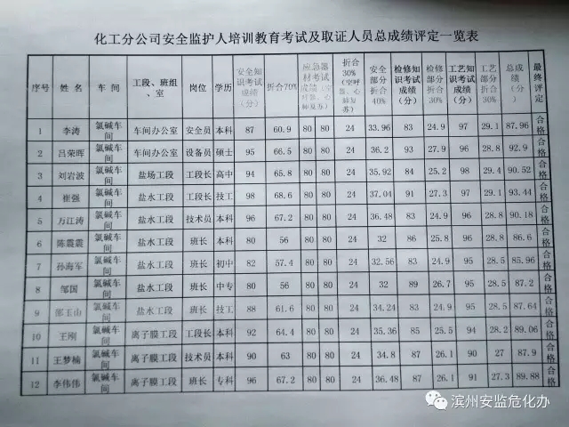濱化集團(tuán)股份有限公司為了規(guī)范公司作業(yè)現(xiàn)場(chǎng)安全監(jiān)護(hù)人員的培訓(xùn)、考核、監(jiān)督管理等工作,提高公司作業(yè)現(xiàn)場(chǎng)安全監(jiān)護(hù)管理水平,保障作業(yè)安全,確保安全生產(chǎn),積極探索推行安全監(jiān)護(hù)人培訓(xùn)教育考試取證上崗管理模式。